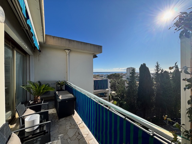 Votre agence CORREA IMMOBILIER vous propose à CANNES, secteur Broussailles, dans une résidence bien entretenue, un appartement traversant au dernier étage avec ascenseur, en excellent état, d'une surface de 66,7 m², comprenant entrée avec placard, séjour avec cuisine us, terrasse orientée sud, deux chambres avec placard, salle d'eau, toilette séparé, parking extérieur privatif. Climatisation.