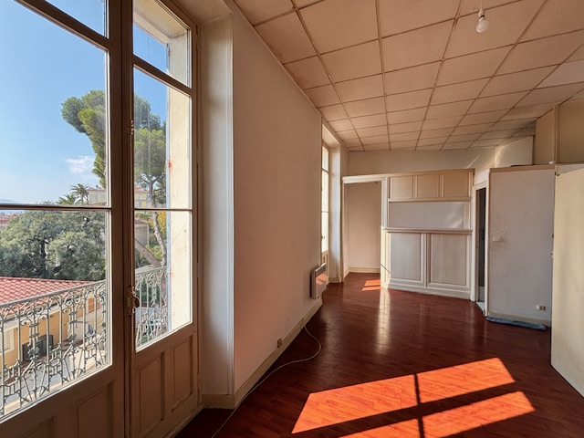 Votre agence CORREA IMMOBILIER, vous propose à CANNES dans un ancien hôtel de 1905, deux appartements réunis à rénover, calme, charme de l'ancien, belle hauteur sous plafond, très belle vue dégagée jusqu'à la mer et le Suquet, proche à pied du centre ville et du marché Forville, d'une surface de 100,96 m², comprenant hall d'entrée, studio avec cuisine us, salle d'eau et wc, d'une surface de 32,67 m² et 5,67m² de balcon orienté sud, un deux pièces d'une surface de 68,29m², comprenant un dégagement, un double séjour avec balcon, cuisine séparée, chambre, salle de bains et toilette.
